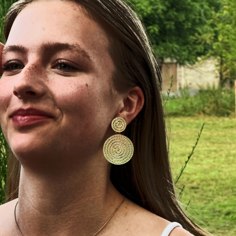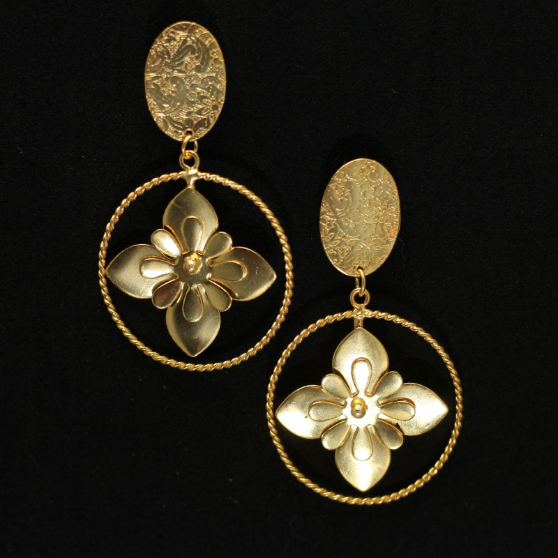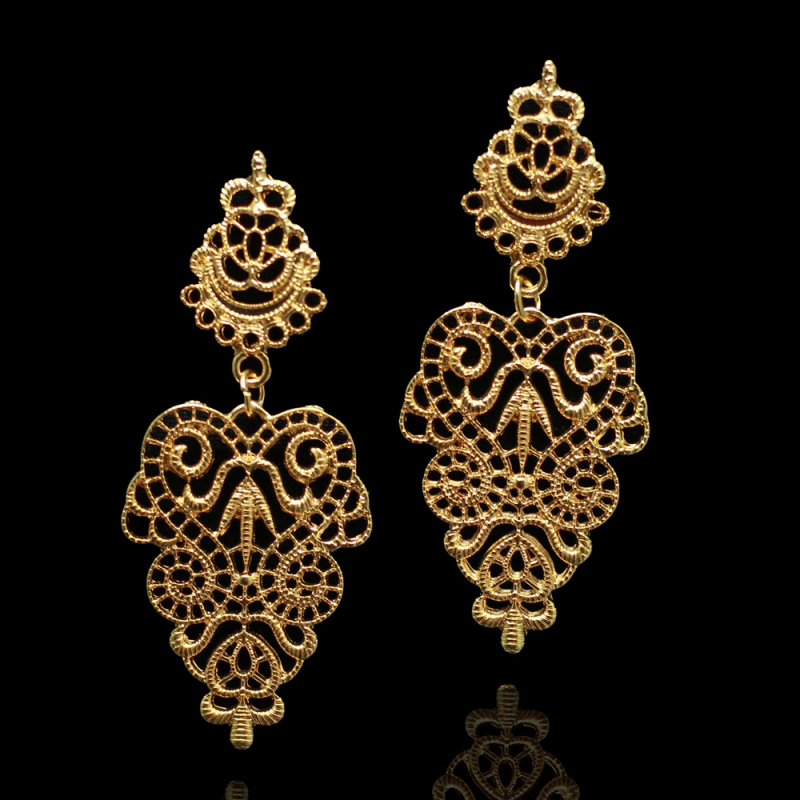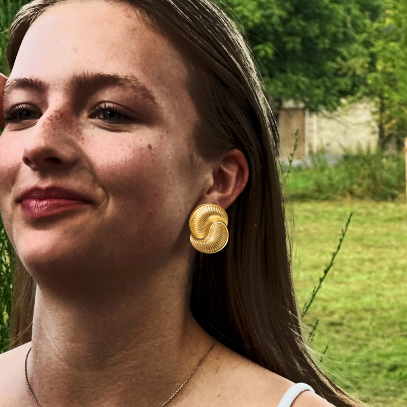 Diese vergoldeten Messing-Ohrringe beeindrucken mit ihrem kunstvollen Design. Sie kombinieren eine elegante Spirale mit verschlungenen herzförmigen Elementen und setzen so modische Akzente. Perfekt für schlichte, einfarbige Outfits und besondere Anlässe.