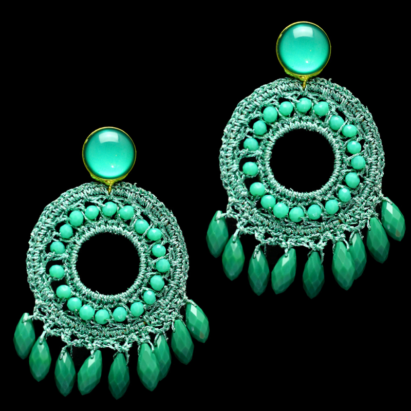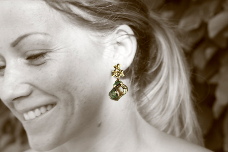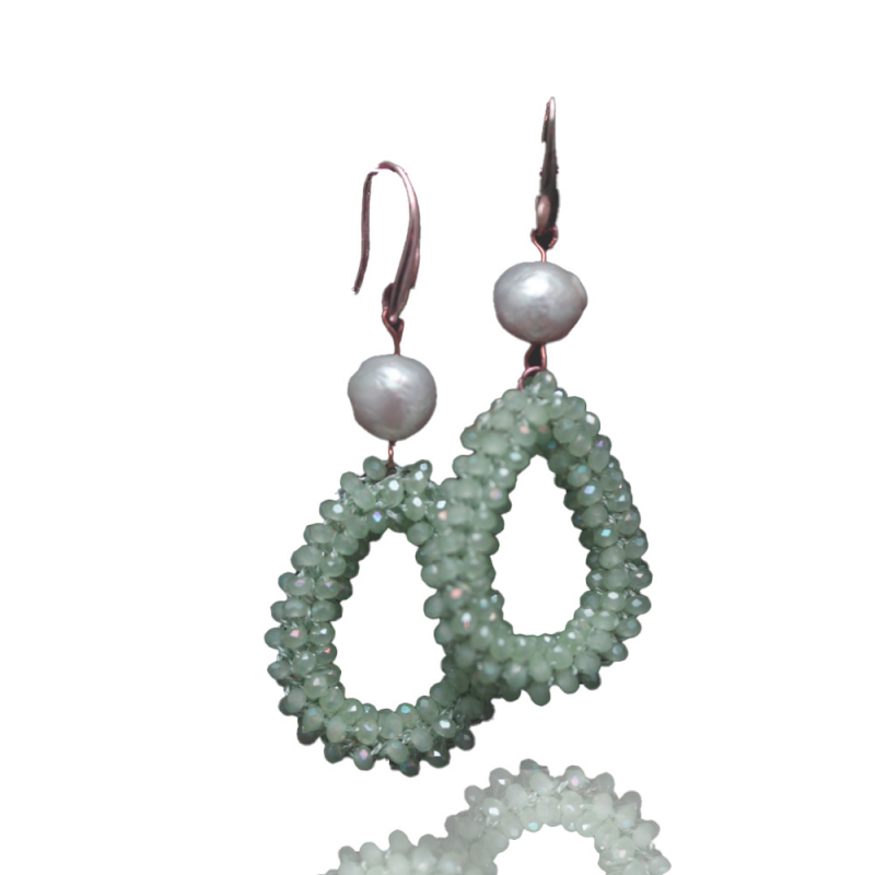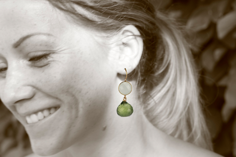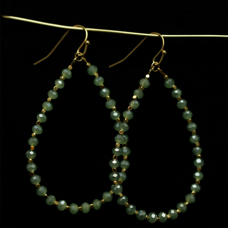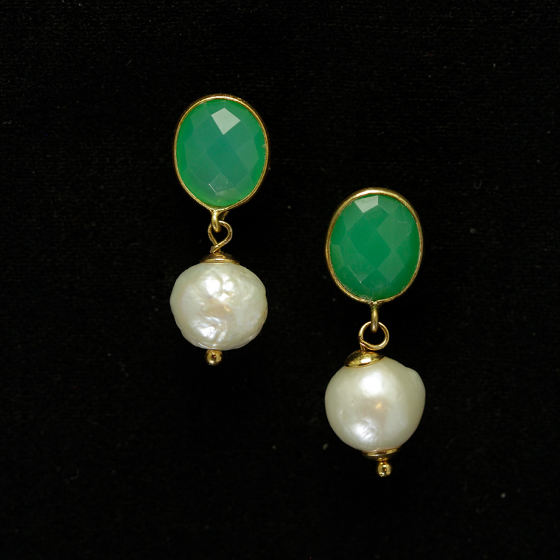 Vergoldete 935-Silber-Creolen mit zarten rosa und hellgrünen Chalcedonen. Eine elegante Kombination aus Luxus und Natürlichkeit, die jedem Look subtile Raffinesse verleiht.